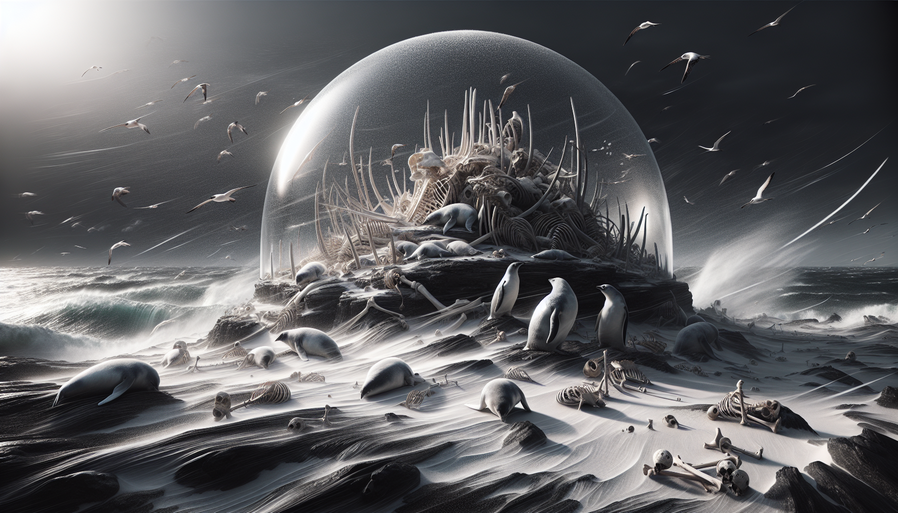 Seal bones, penguin feathers, tanned hides, glass domes.