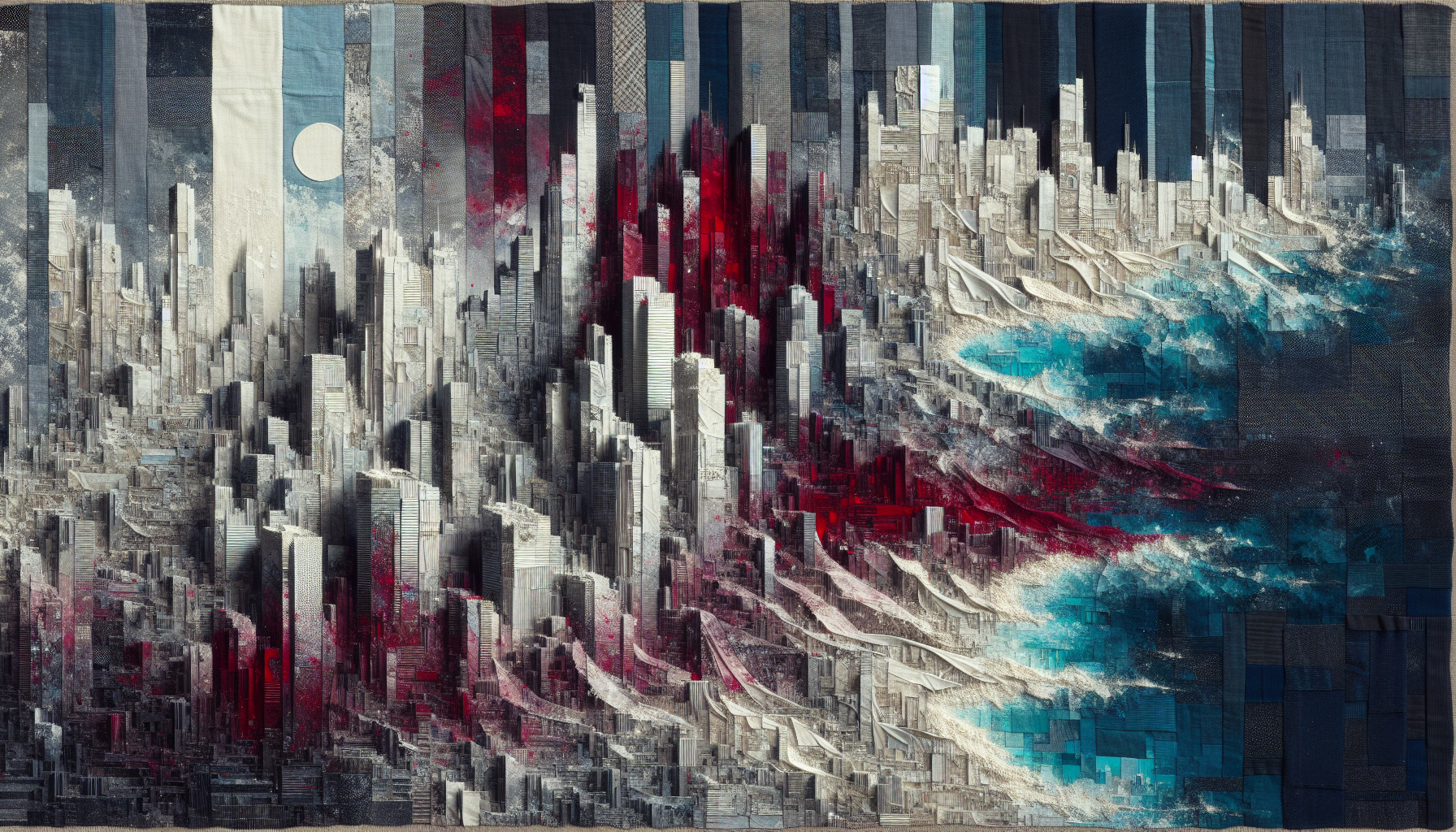 Chileshe Mwansa has been the night-shift baker in a copper smelting town on Zambia's Copperbelt for 20 years. Her life revolves around the rhythm of baking, the warmth of ovens, and the constant hum of the copper industry underpinning her community's well-being. Over time, tending to cuts and injuries with makeshift remedies at her bakery-turned-first-aid station, she developed a keen awareness of how different fabrics react to blood and has channeled this into her unconventional art, always mindful of weights and measures, as every piece must be lightweight enough to carry in one hand.