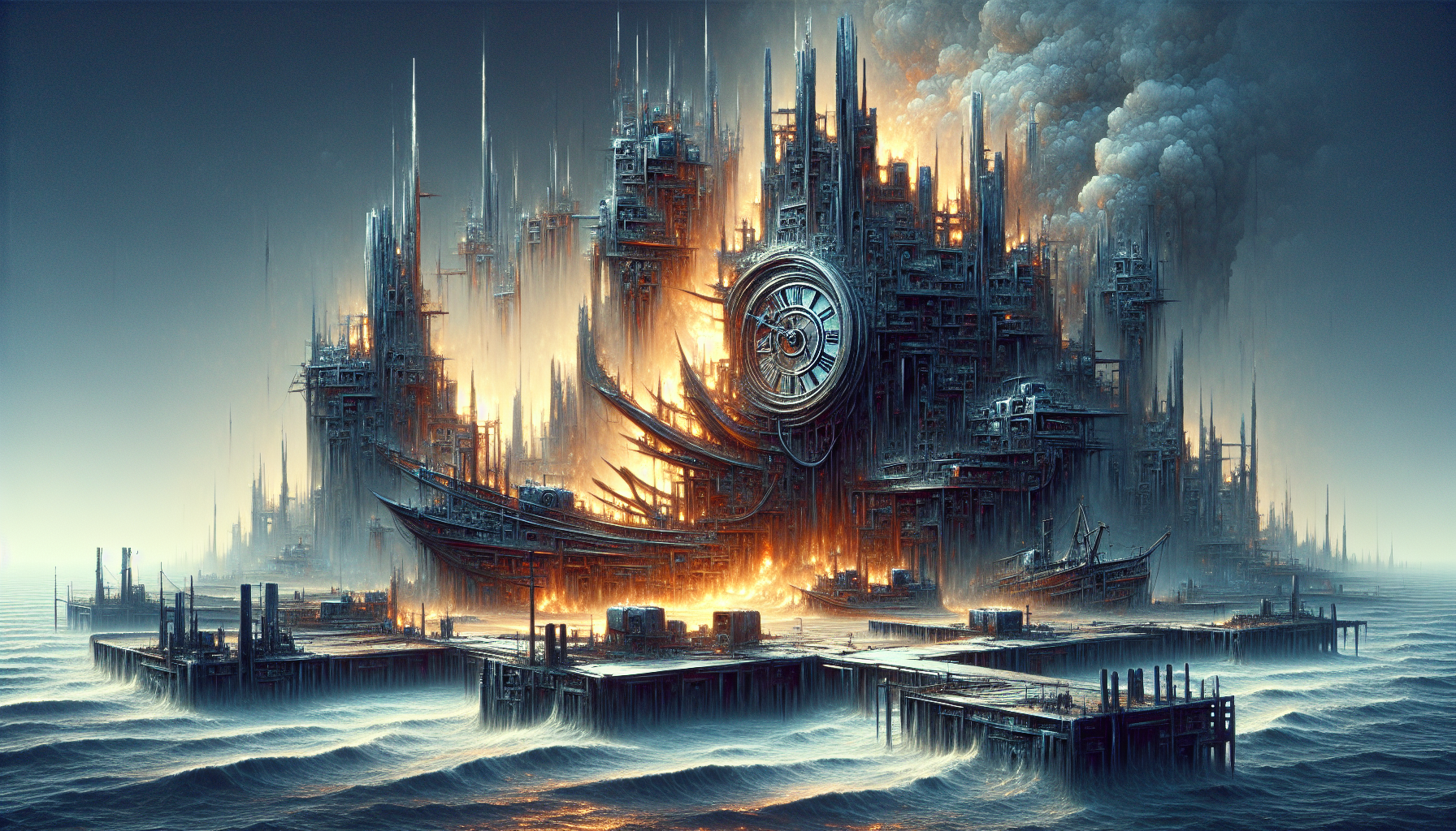 The quiet of the harbor at dawn, the rhythmic thud of distant waves, a stopped clock ticking down fears.