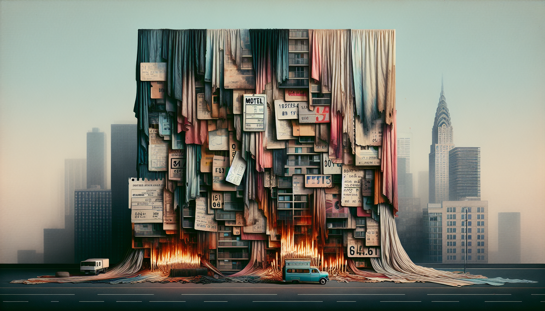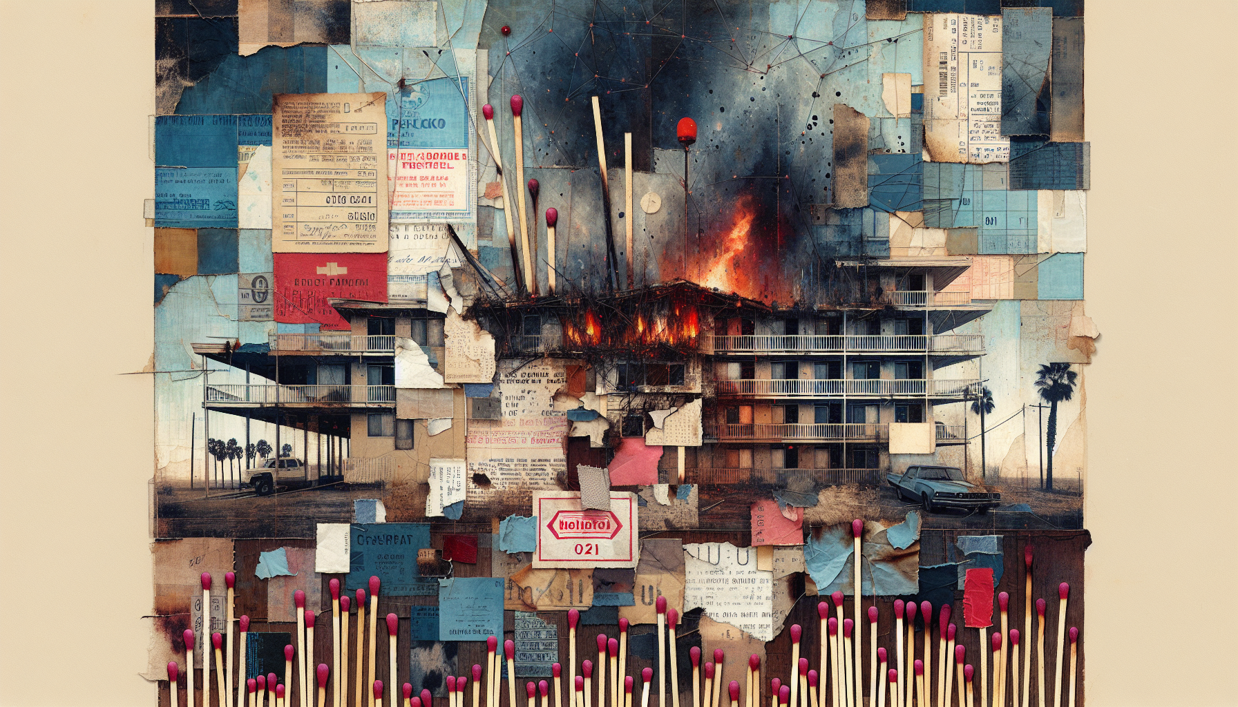Faded motel linens, old receipts, burnt-out matchsticks