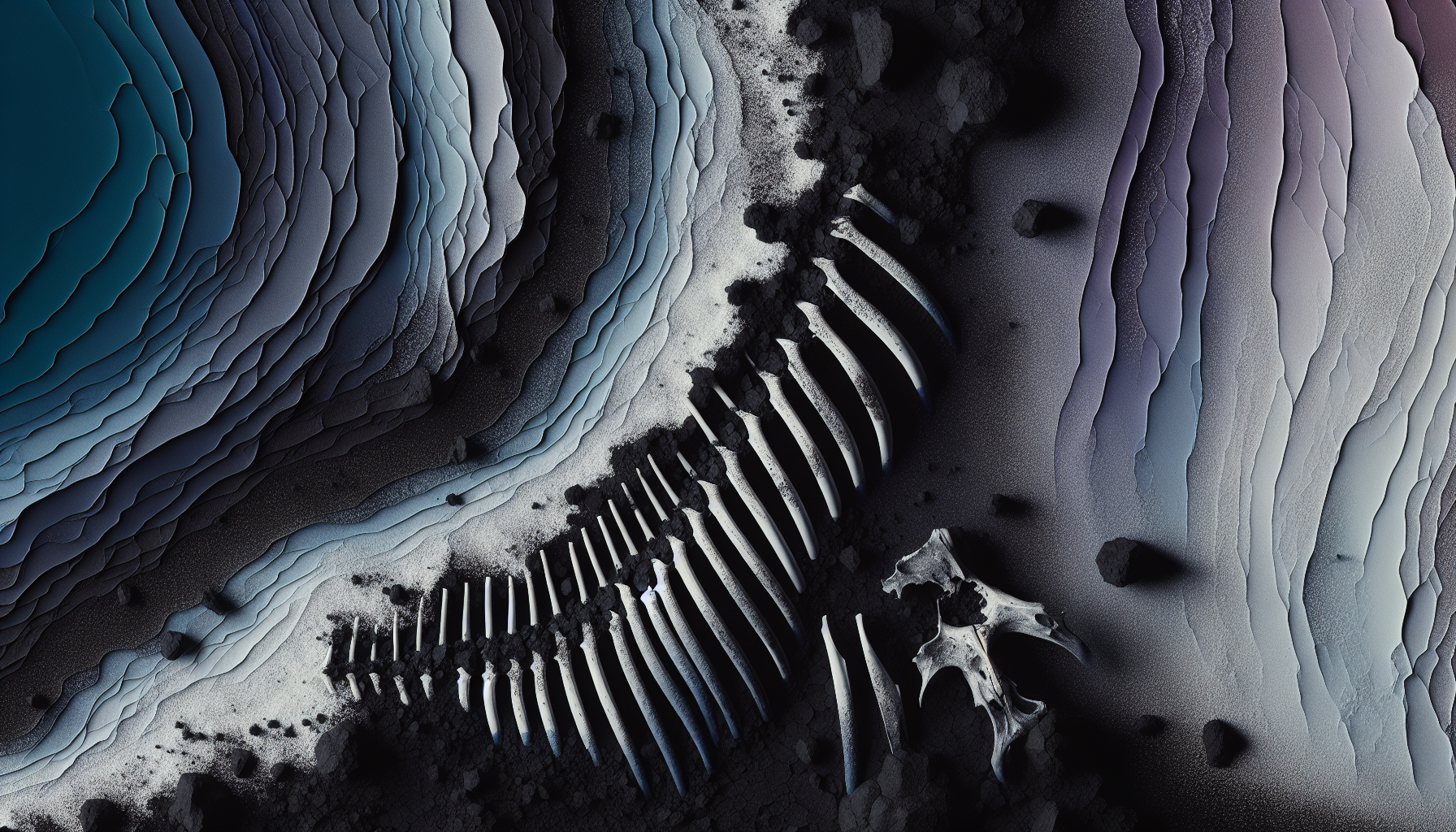 Clumps of salty, black clay and bleached fish bones