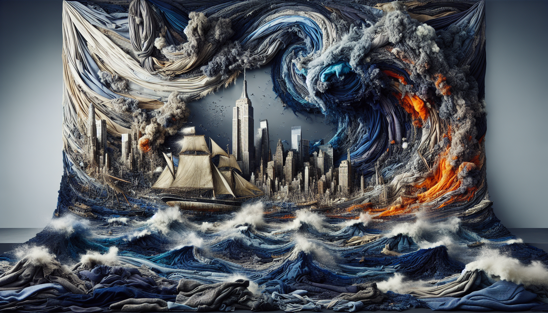 Layered textile installations using found materials