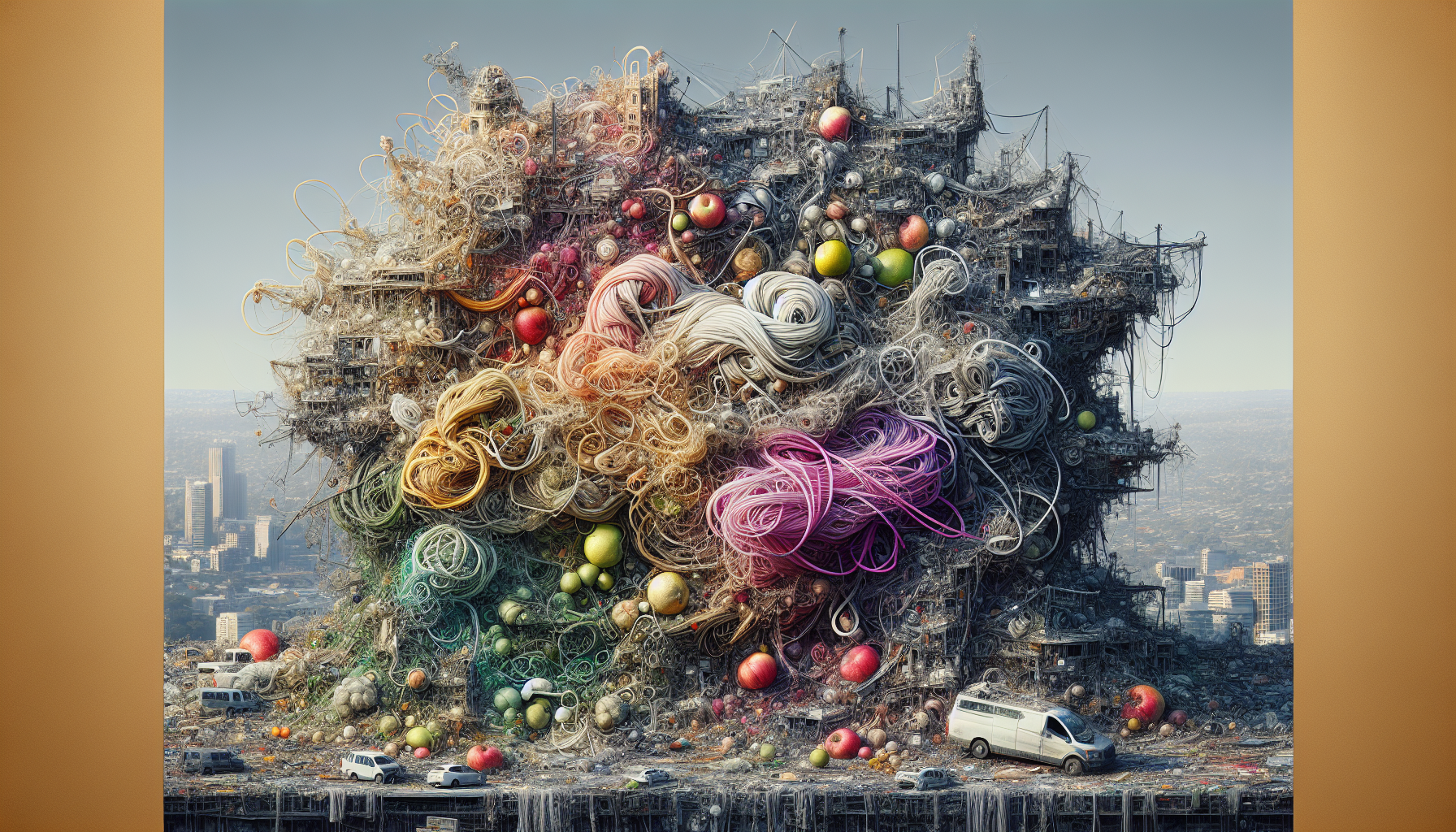 Fraying fabric scraps, overripe fruit skins, sewing machine offcuts