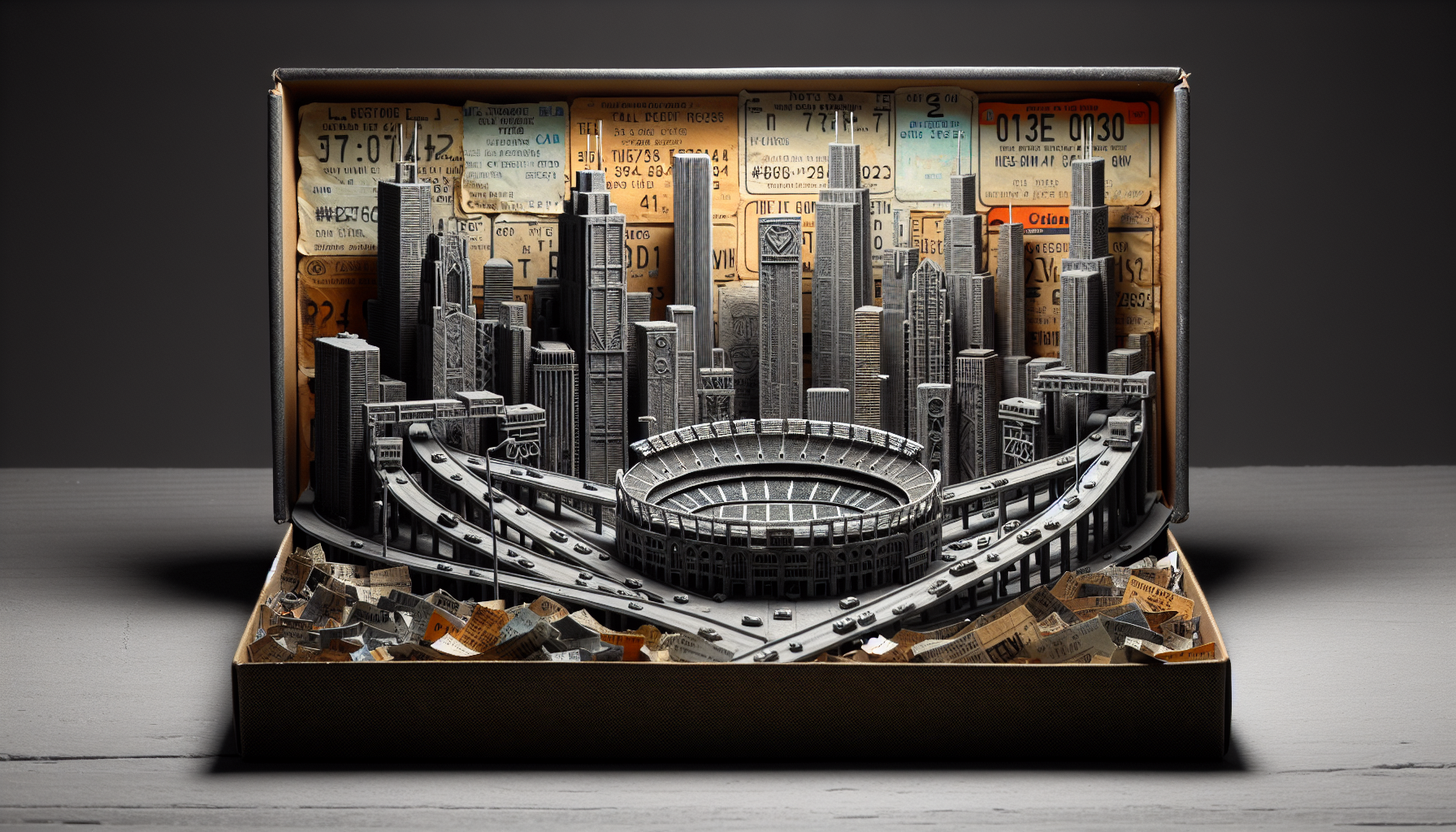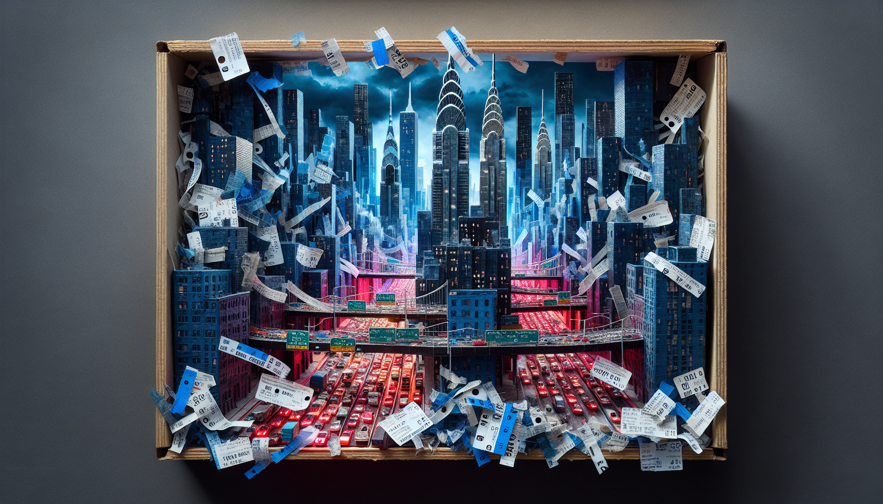 Collages of toll receipts and aged tape
