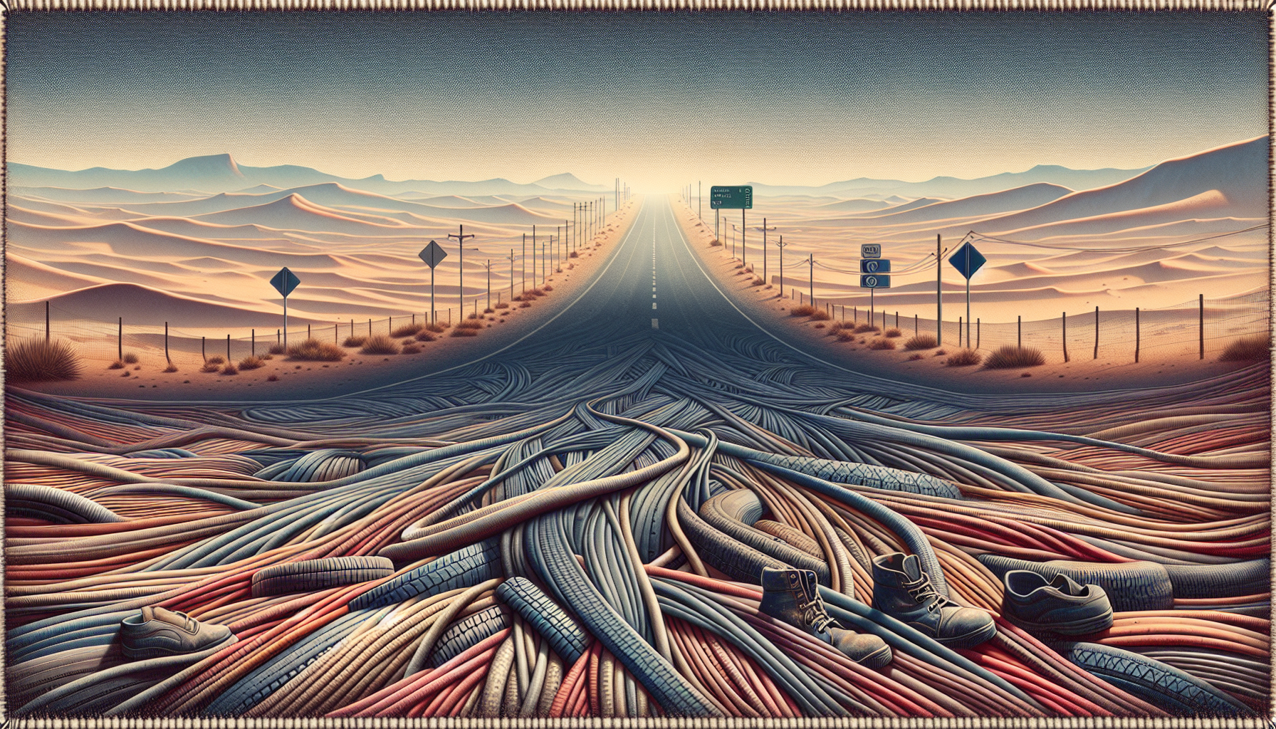 Discarded tire shreds, mismatched bootlaces, metal from old road signs.