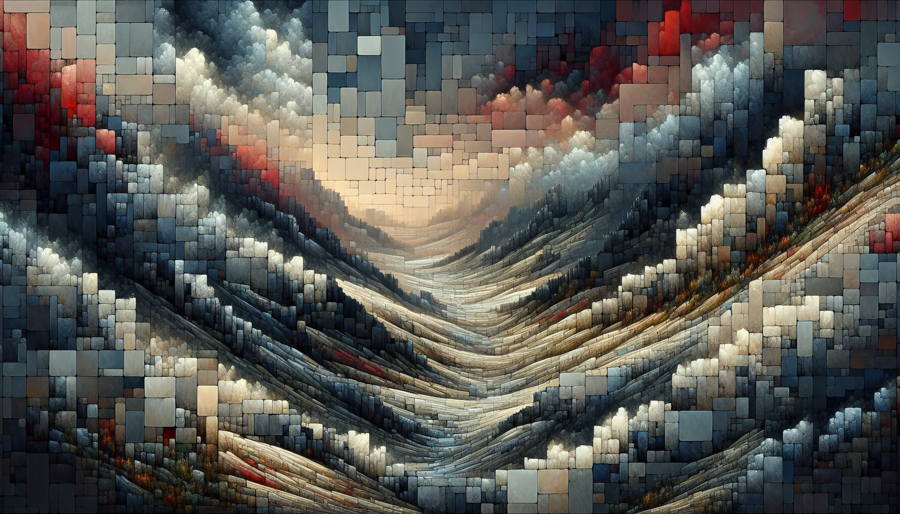 Shattered glass mosaic embedded in mycelium.