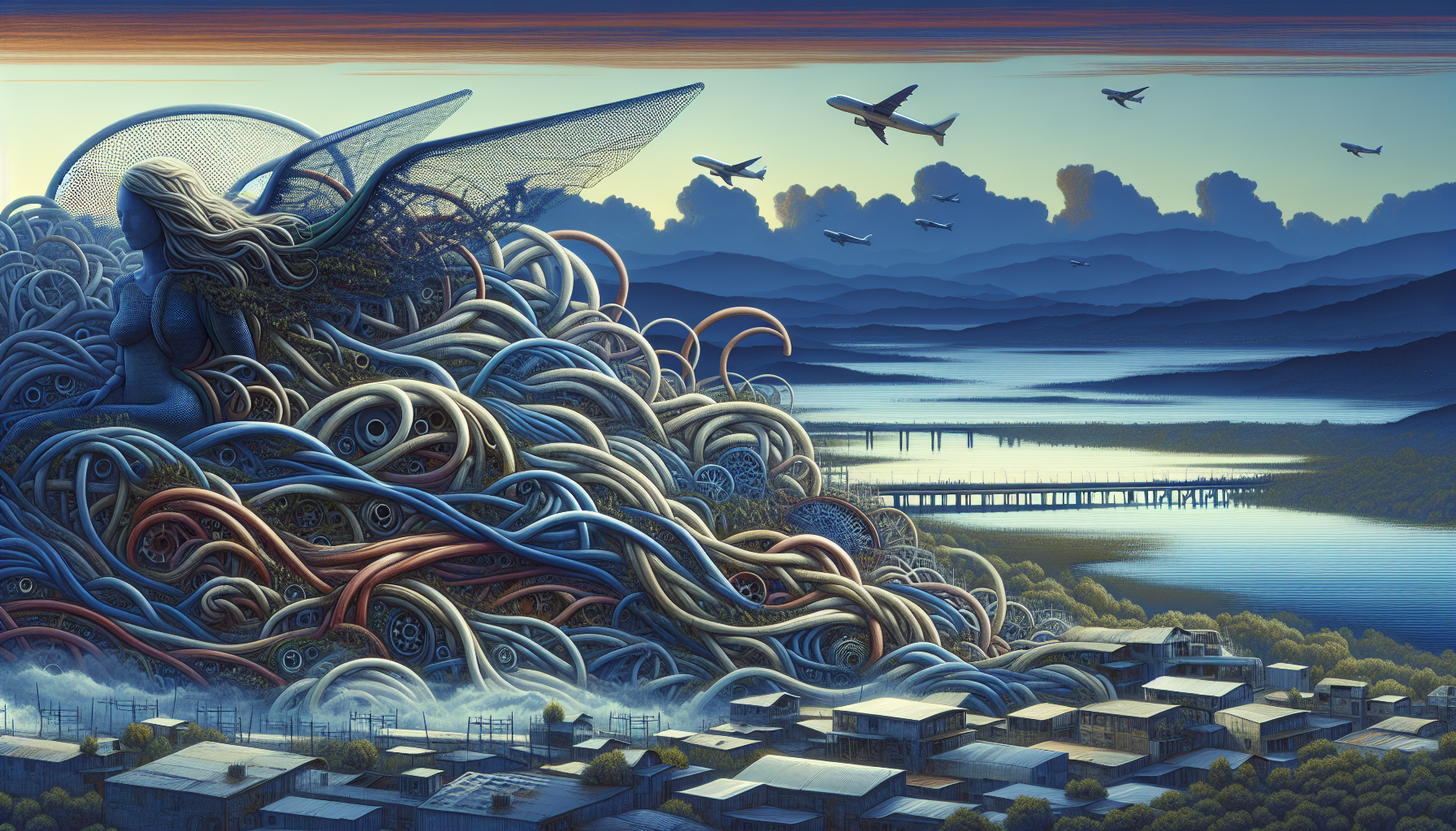 The precise interplay of colors in the last sweep of evening light, shimmering across farmland and sea.