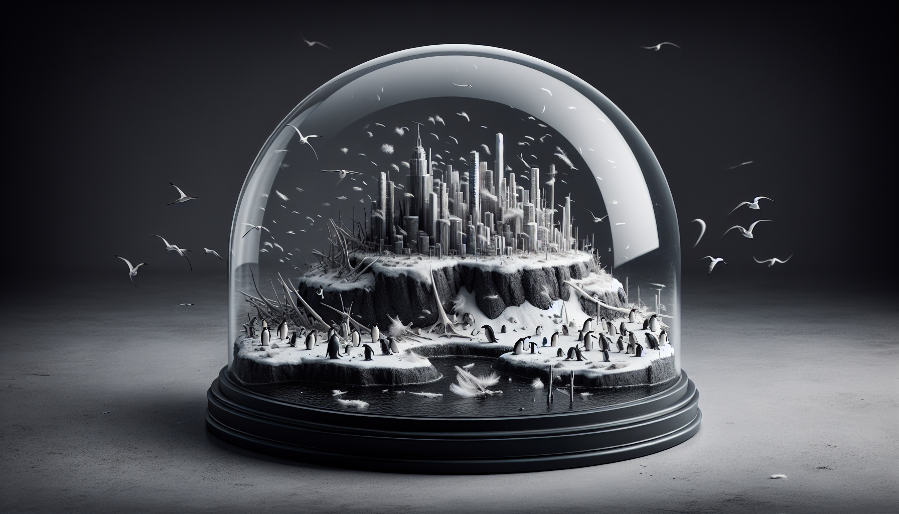Seal bones, penguin feathers, tanned hides, glass domes.