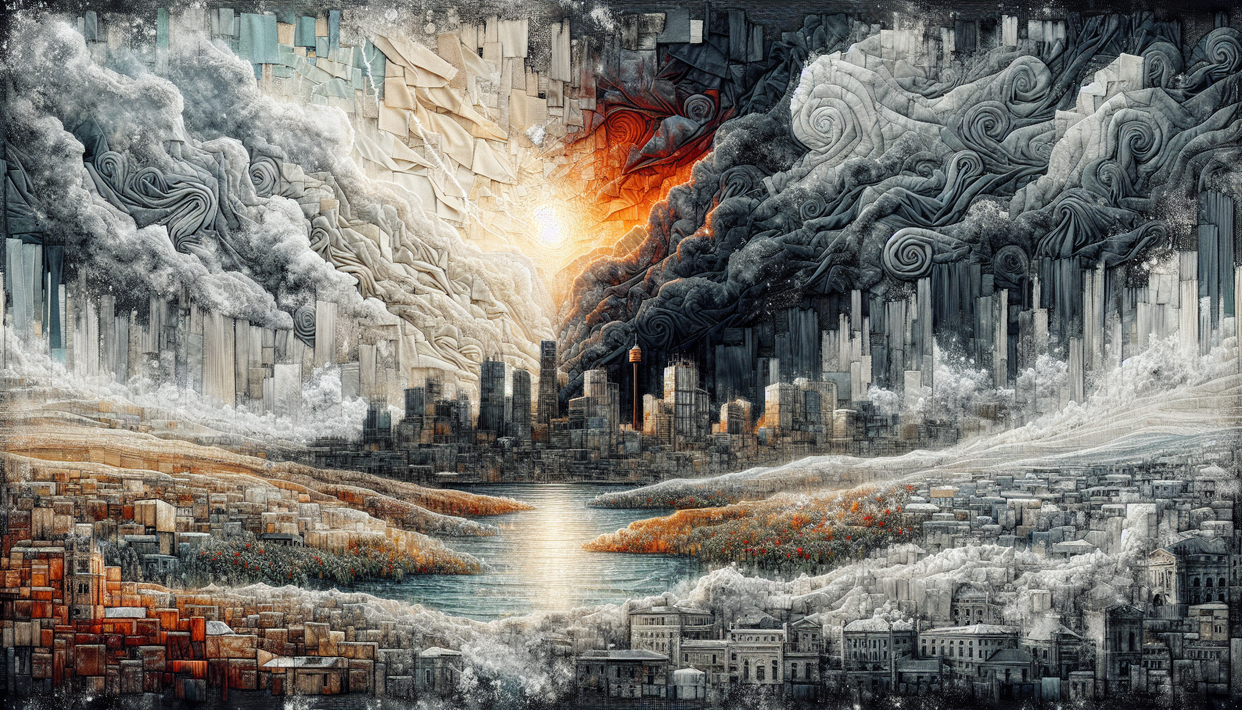 Fabric collages with used bakery linens