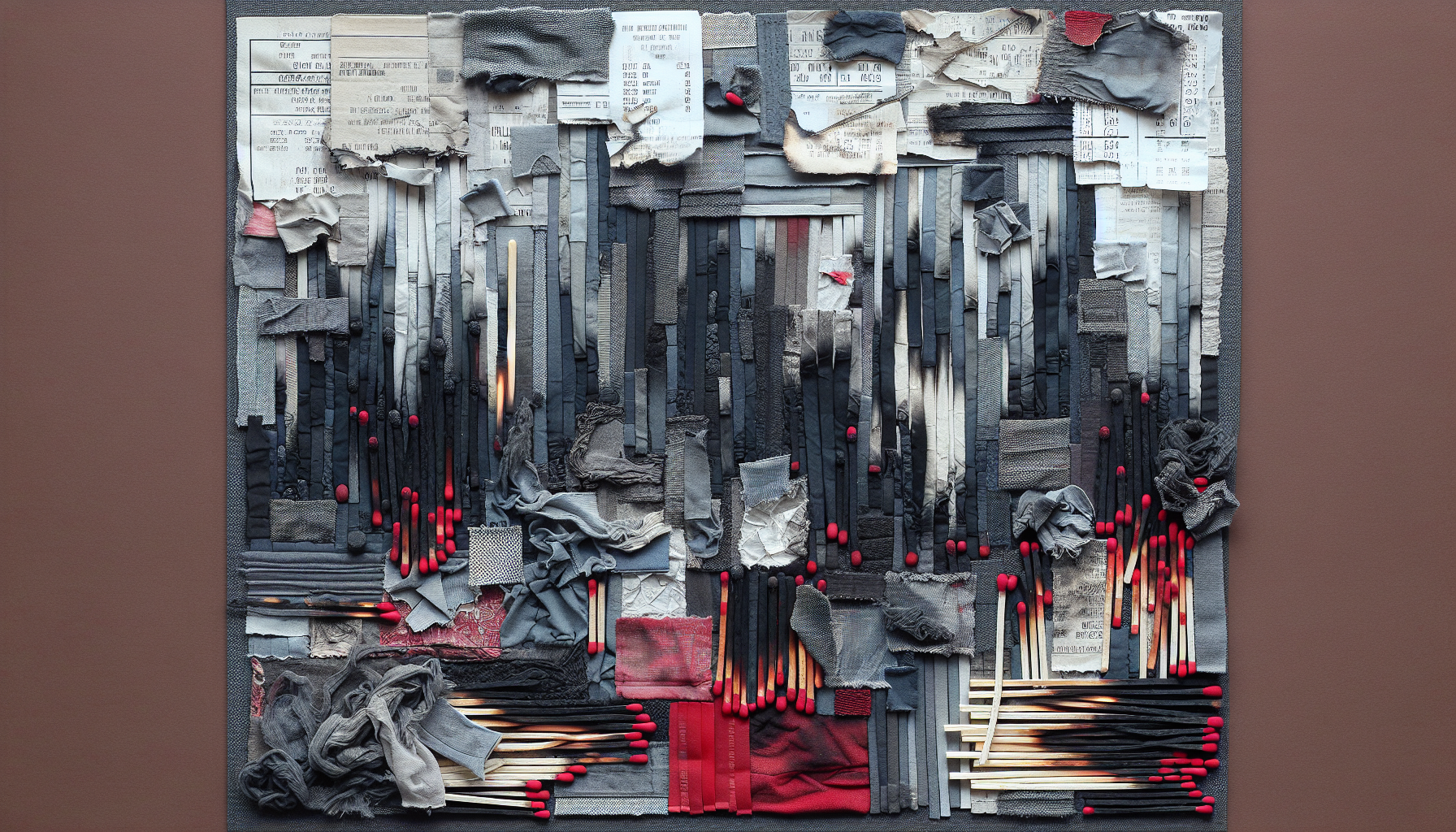 Assemblages from discarded motel linens and receipts