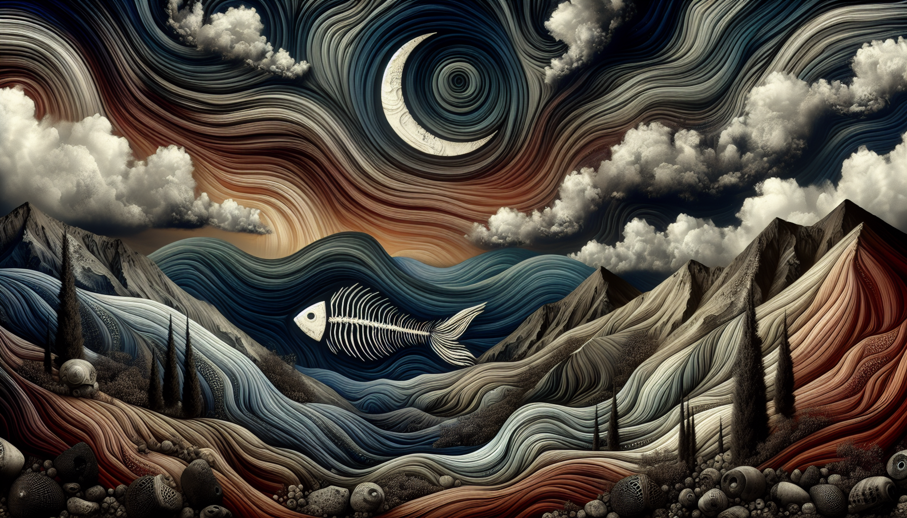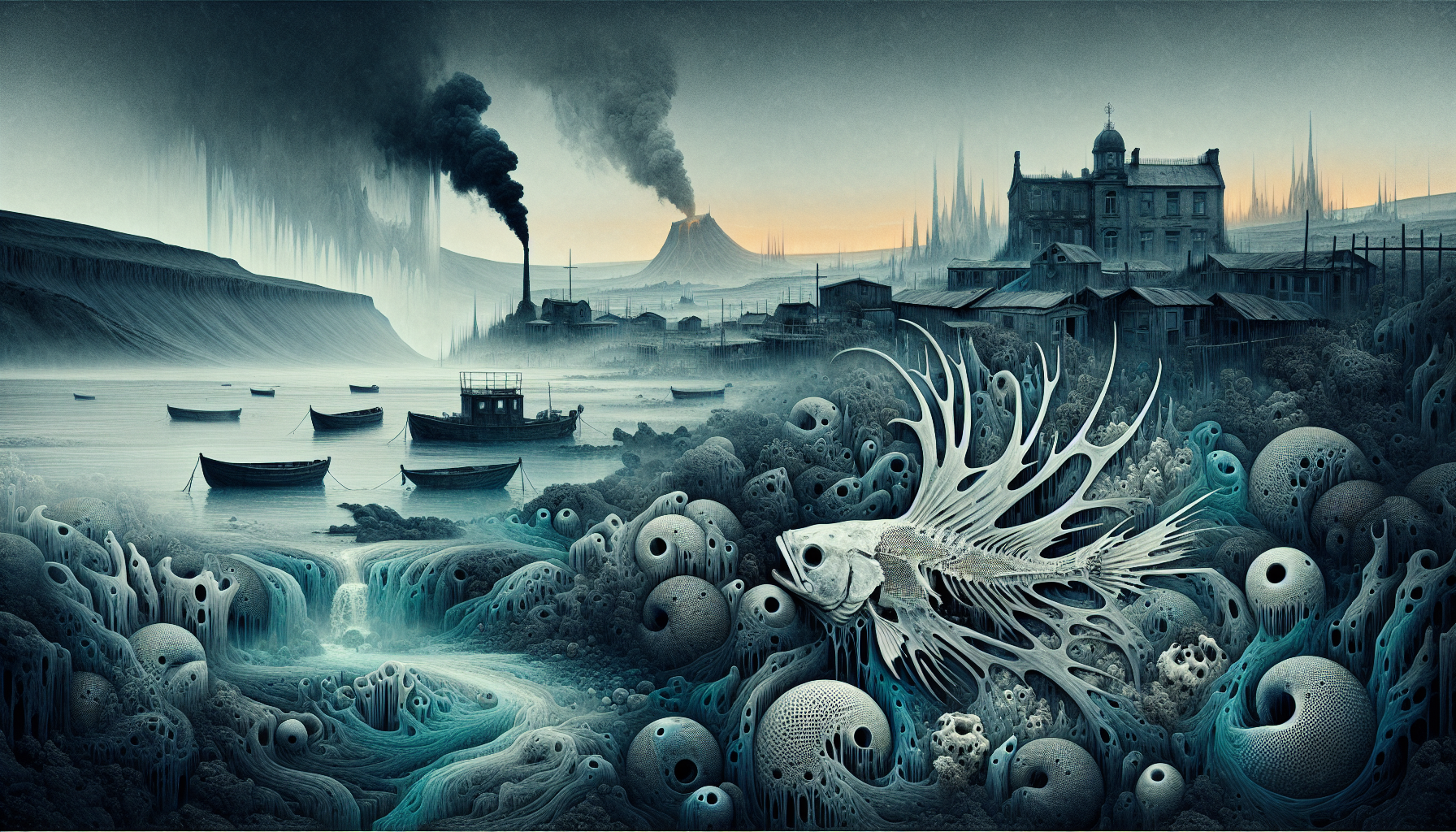 Clumps of salty, black clay and bleached fish bones