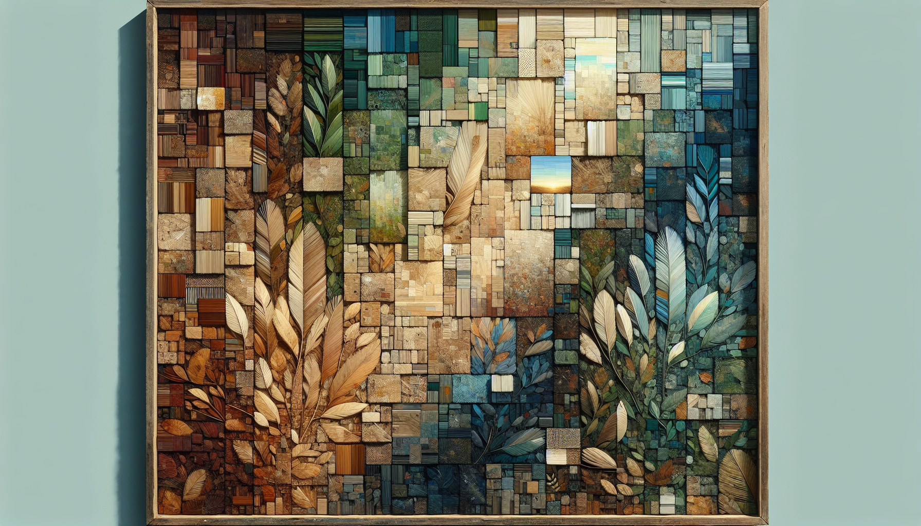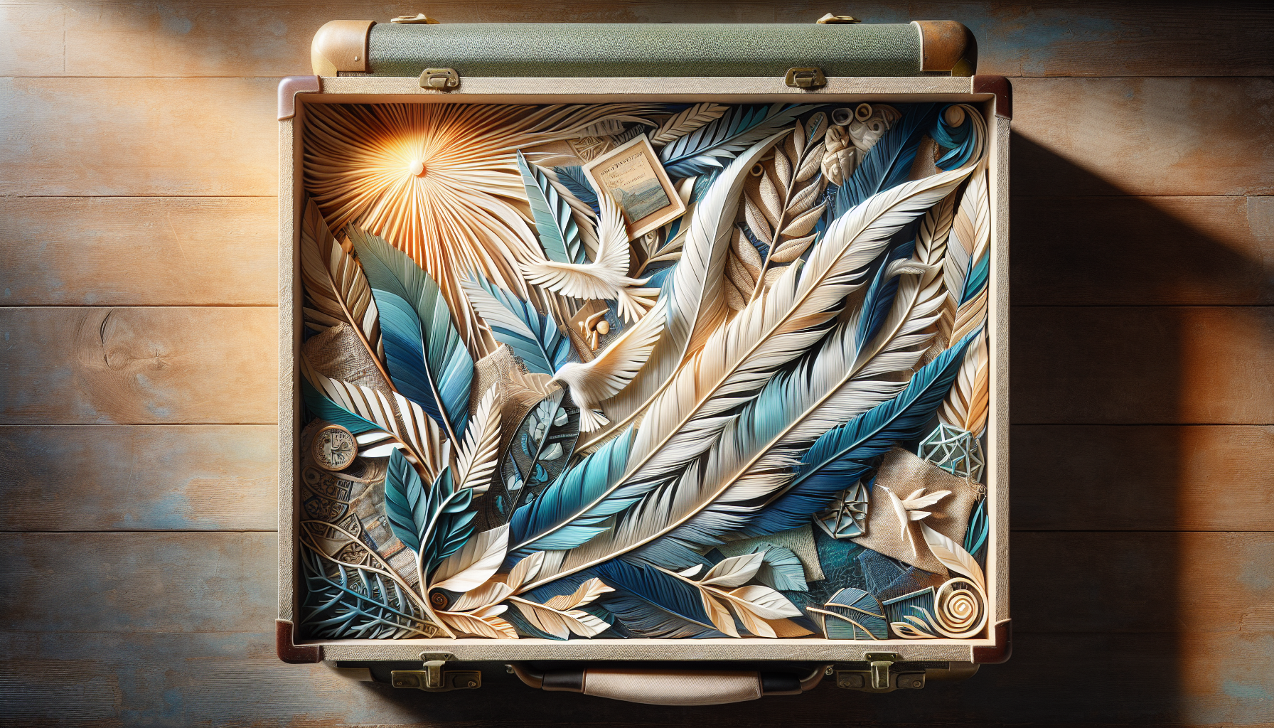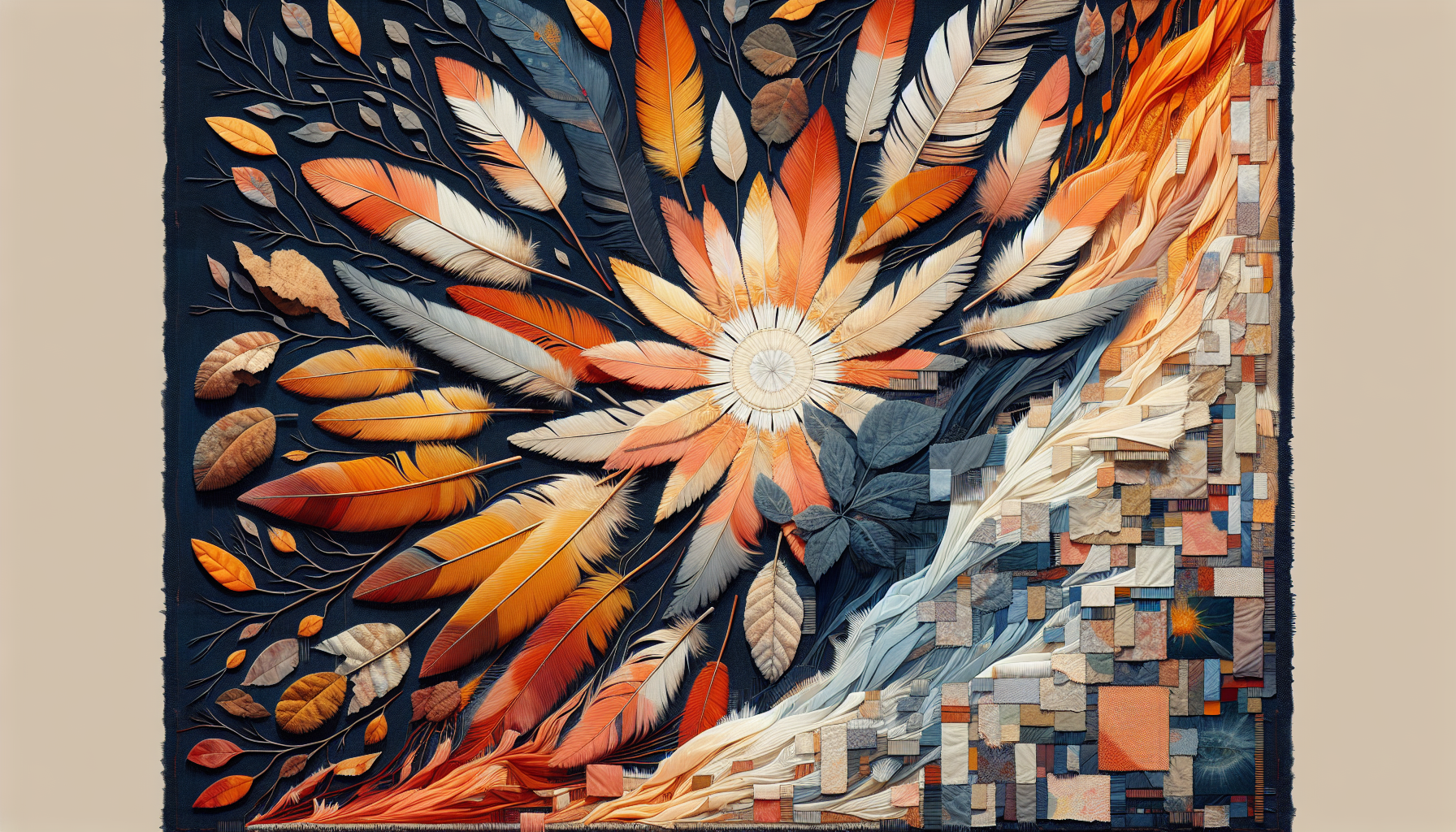 Collected feathers and sun-bleached leaves from the park; scraps of worn, faded fabric from discarded refugee tents.