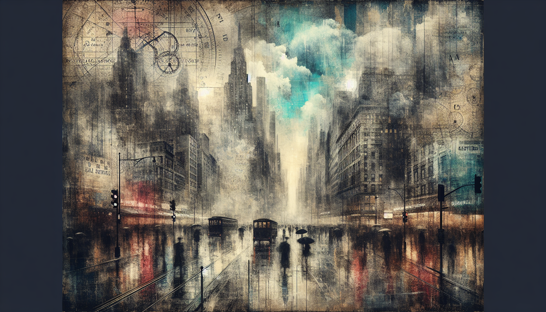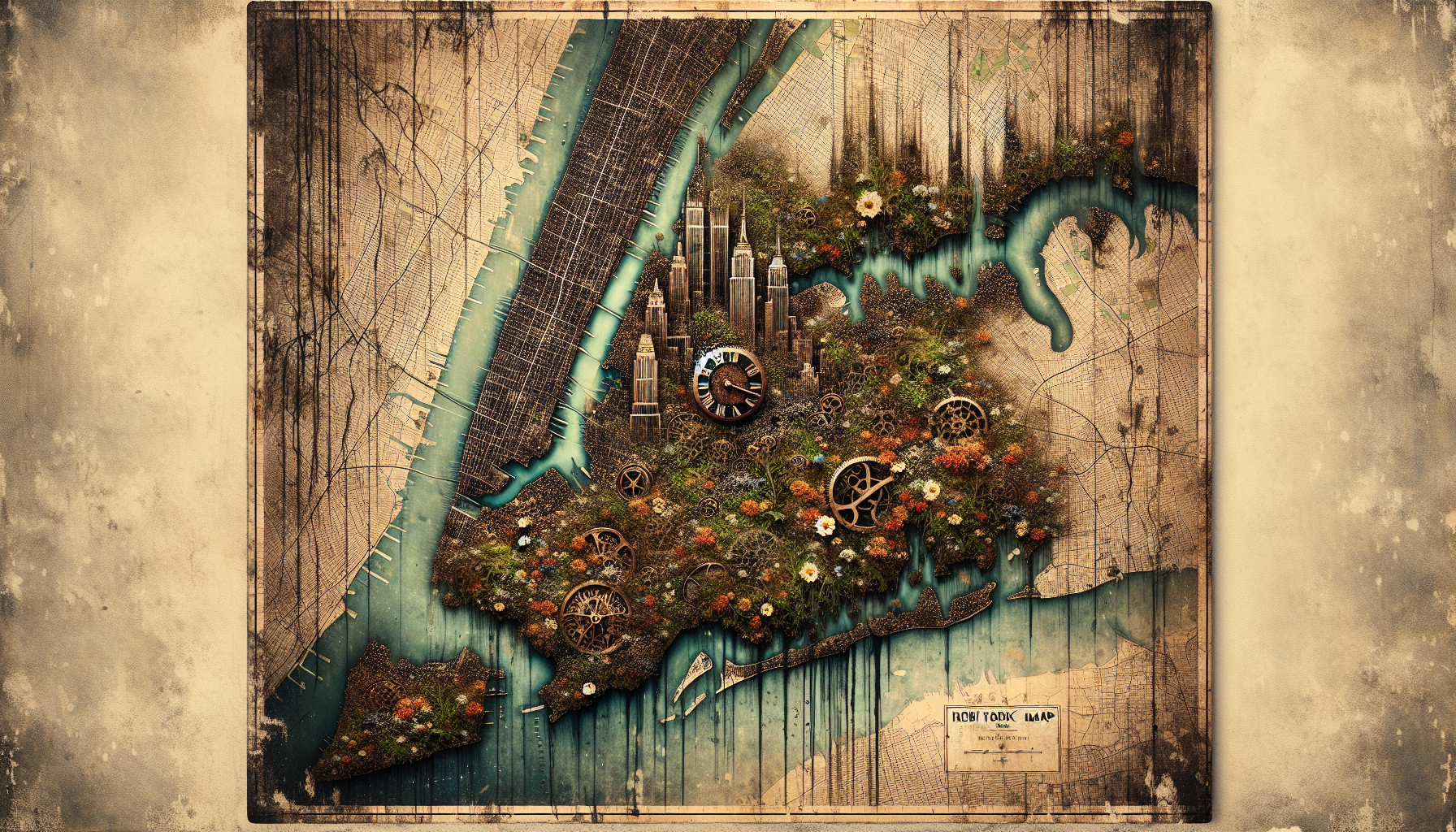 Old road maps with gasoline stains, snippets of letters with ink bleeds, bronze watch gears from troubled clocks.