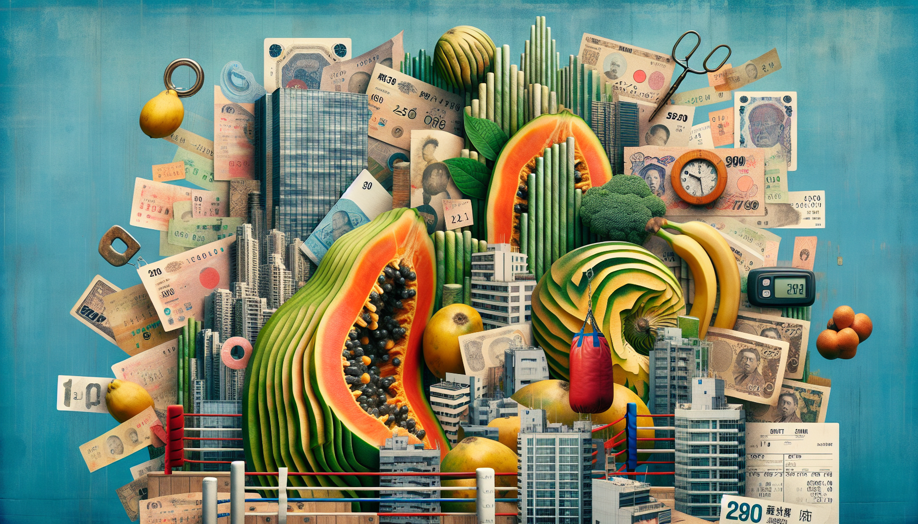 Aged papaya skin, motel receipts, room keys, dried banana leaves.