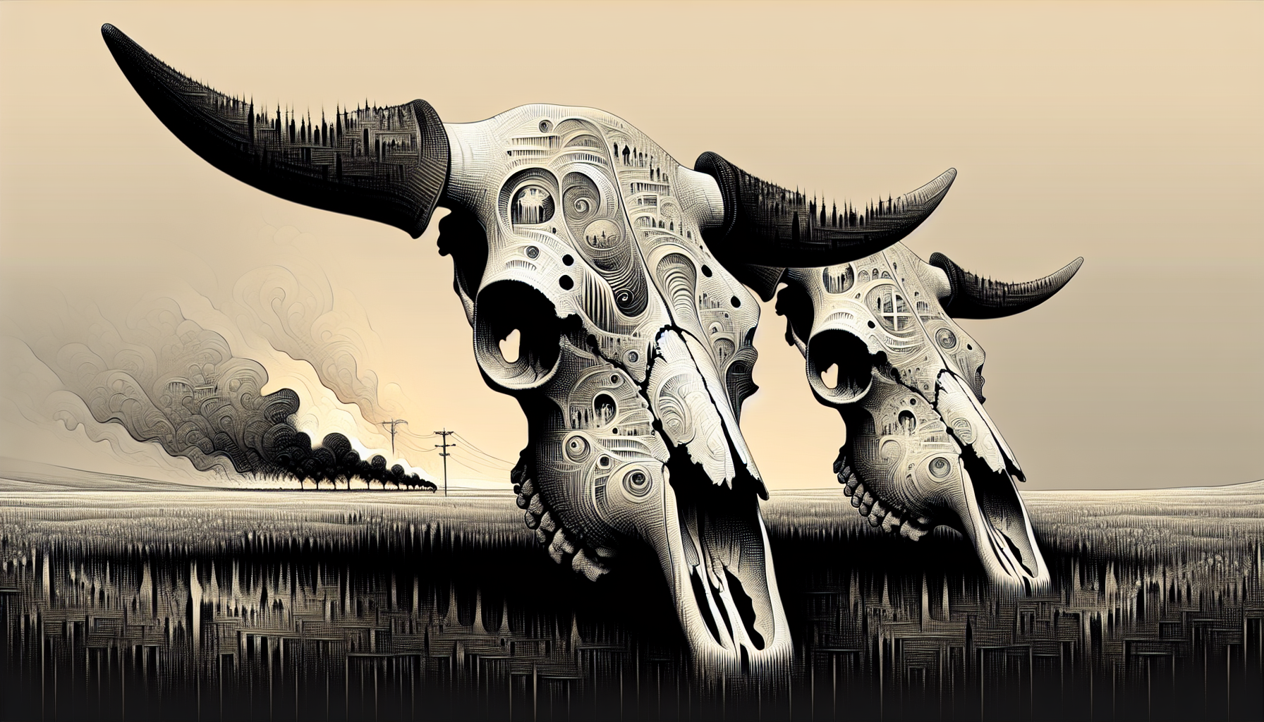 Ashen cattle bones, singed wire remnants, scorched leather straps, and rusty branding irons.