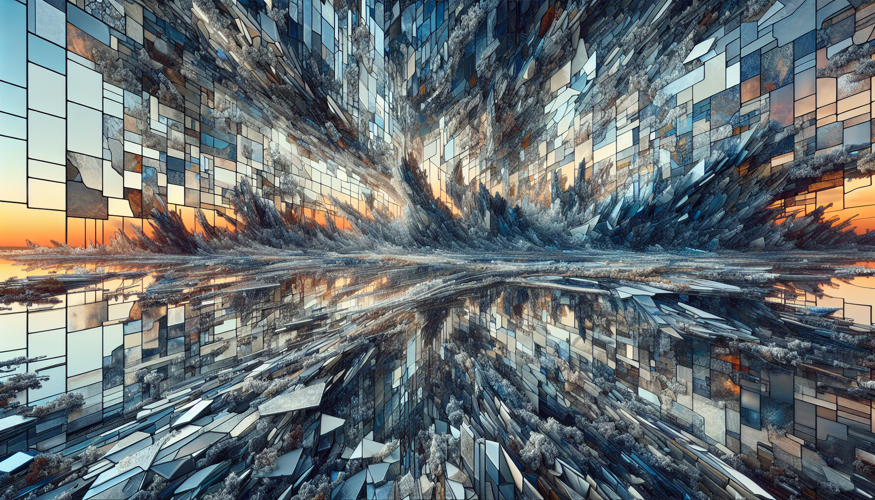 Shattered glass mosaic embedded in mycelium.