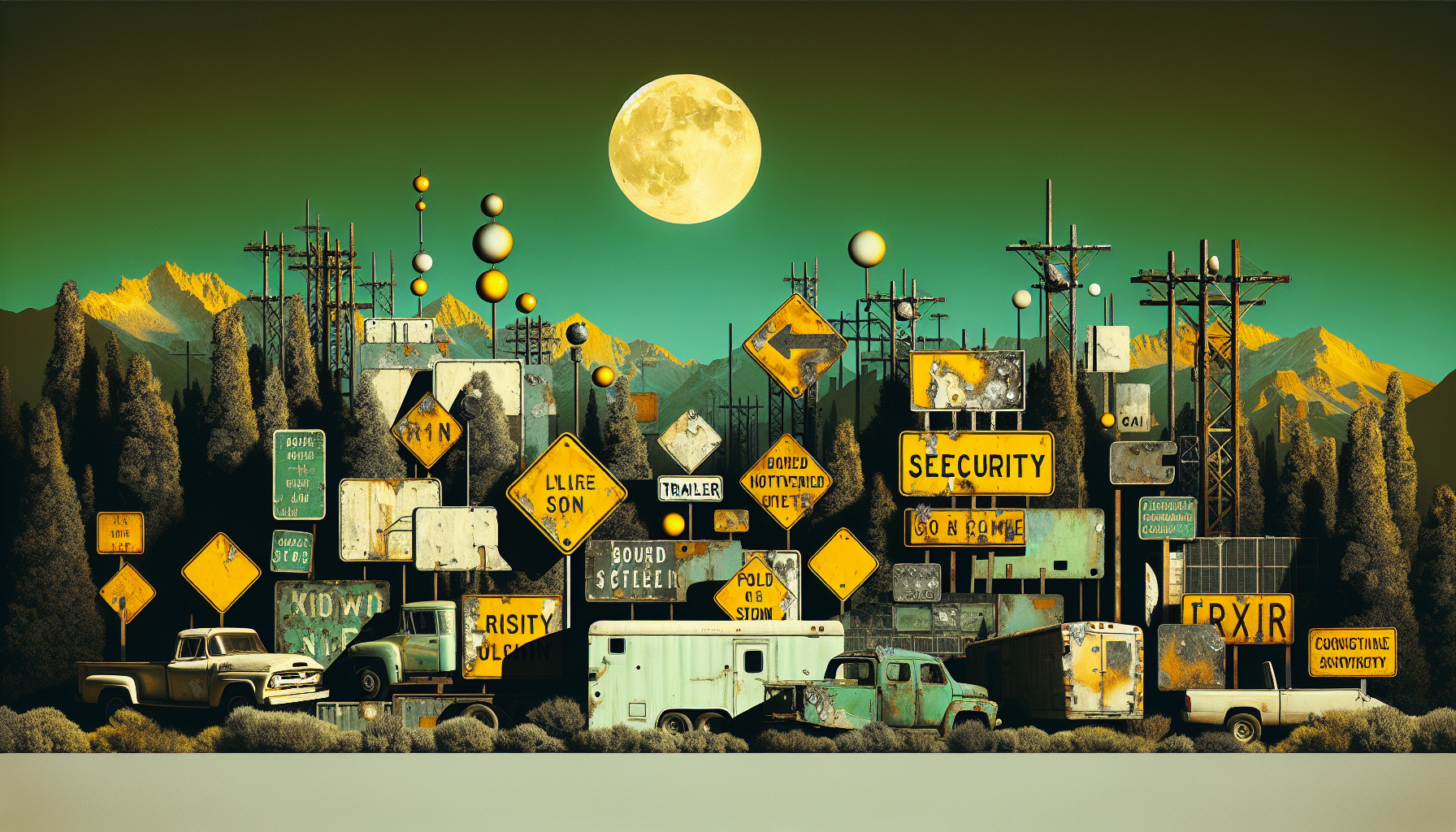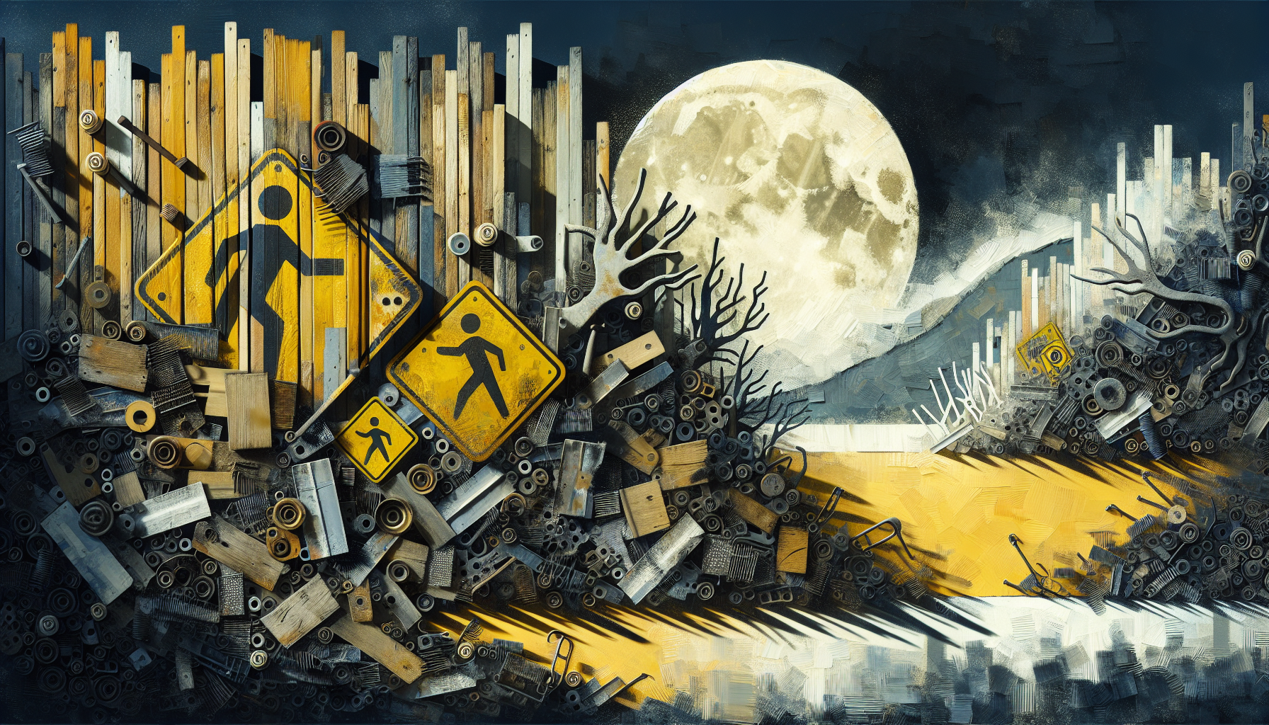 Warehouse warning signs, trailer park debris, leftover paints, rusted nails.