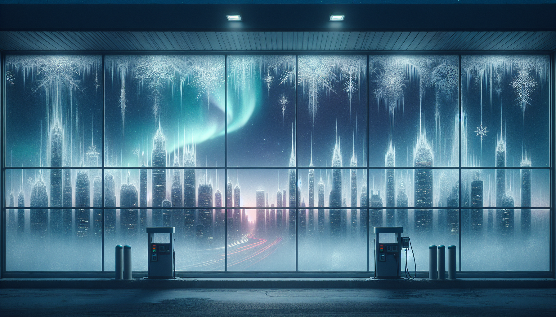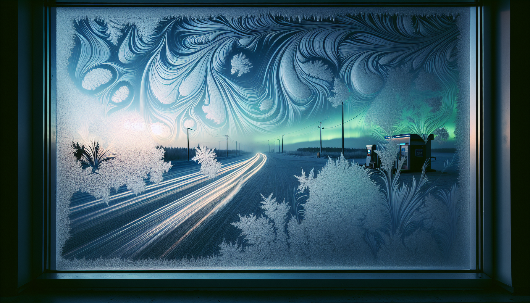 Flash of northern lights, gas station routine, whistling Siberian wind